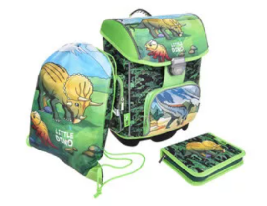 Školní set s aktovkou, penálem a vakem třeba na tělocvik. Vhodný jako dárek pro budoucího prvňáčka, který miluje dinosaury.