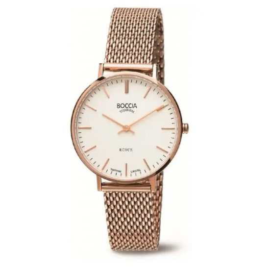 Krásné hodinky značky Boccia v barvě rose gold v kombinaci titanu a safíru představují elegantní doplněk, který vyzdvihne ženskost a podtrhne jakýkoli outfit.
