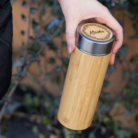 Zimní období je plné horkých nápojů a do této bambusové termosky se vejde až 450 ml jakéhokoliv nápoje budete chtít. Originálním detailem je možnost nechat si na víčko vygravírovat vlastní nápis, či obrázek.